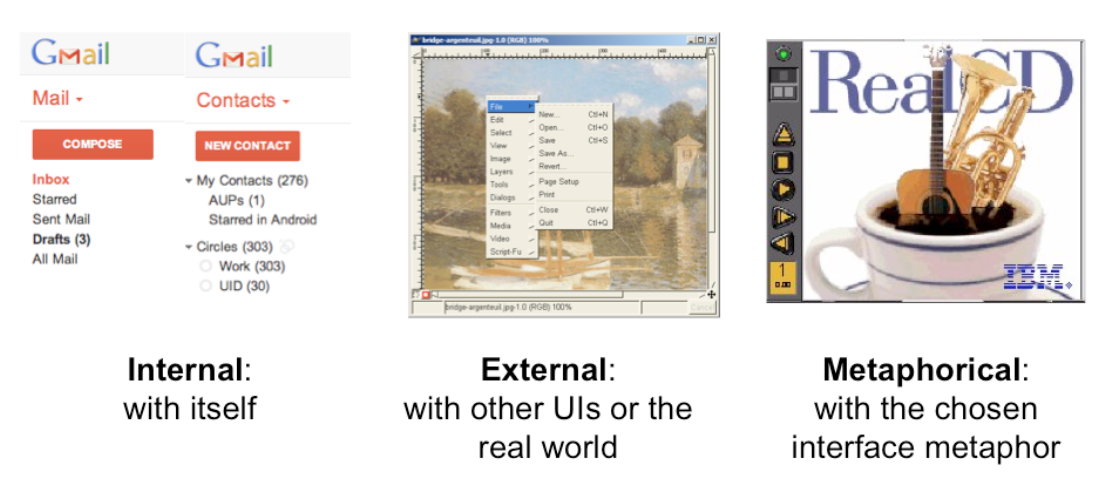 - Consistency allows the user to transfer their existing knowledge easily to a new UI