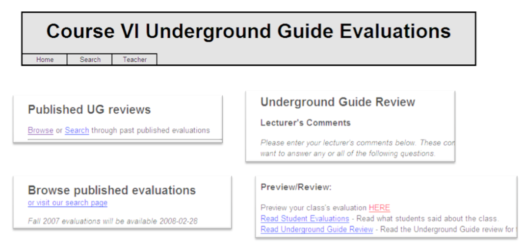 Here are some examples from MIT's Course VI Underground Guide website -- confusion about what's a "review" and what's an "evaluation".