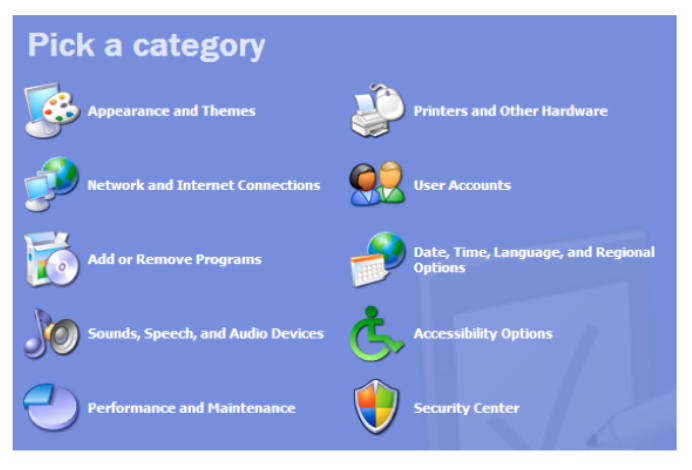 Examples of good scent can be seen in the (XP-style) Windows Control Panel on the left, which was carefully designed. Look, for example, at "Printers and Other Hardware." Why do you think printers were singled out?