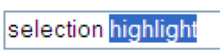 A common technique for showing a selection highlight in text is [reverse video](https://en.wikipedia.org/wiki/Reverse_video) (white text on dark colored background). For shapes and objects, the selection highlight may be done by **selection handles**, or by a dotted or animated border around the object ("crawling ants"). Selection handles are appealing because they do double-duty -- both indicating the selection, and providing visible affordances for resizing the object.