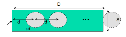 Cascading submenus are hard to use, because the mouse pointer is constrained to a narrow tunnel in order to get over into the submenu. Unlike the pointing tasks that Fitts's Law applies to, this steering task puts a strong requirement on the error your hand is allowed to make: instead of iteratively reducing the error until it falls below the size of the target, you have to continuously keep the error smaller than the size of the tunnel. The figure shows an intuition for why this works. Each cycle of the motor system can only move a small distance d such that the error εd is kept below S. The total distance D therefore takes D/d = εD/S cycles to cover. As a result, the time is proportional to D/S, not log D/S. It takes *exponentially longer* to hit a menu item on a cascading submenu than it would if you weren't constrained to move down the tunnel to it.