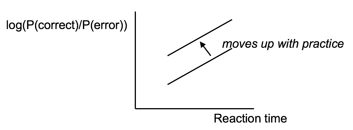 Another important phenomenon of the cognitive processor is the fact that we can tune its performance to various points on a **speed-accuracy tradeoff** curve. We can force ourselves to make decisions faster (shorter reaction time) at the cost of making some of those decisions wrong. Conversely, we can slow down, take a longer time for each decision and improve accuracy. It turns out that for skill-based decision making, reaction time varies linearly with the log of odds of correctness; i.e., a constant increase in reaction time can double the odds of a correct decision.