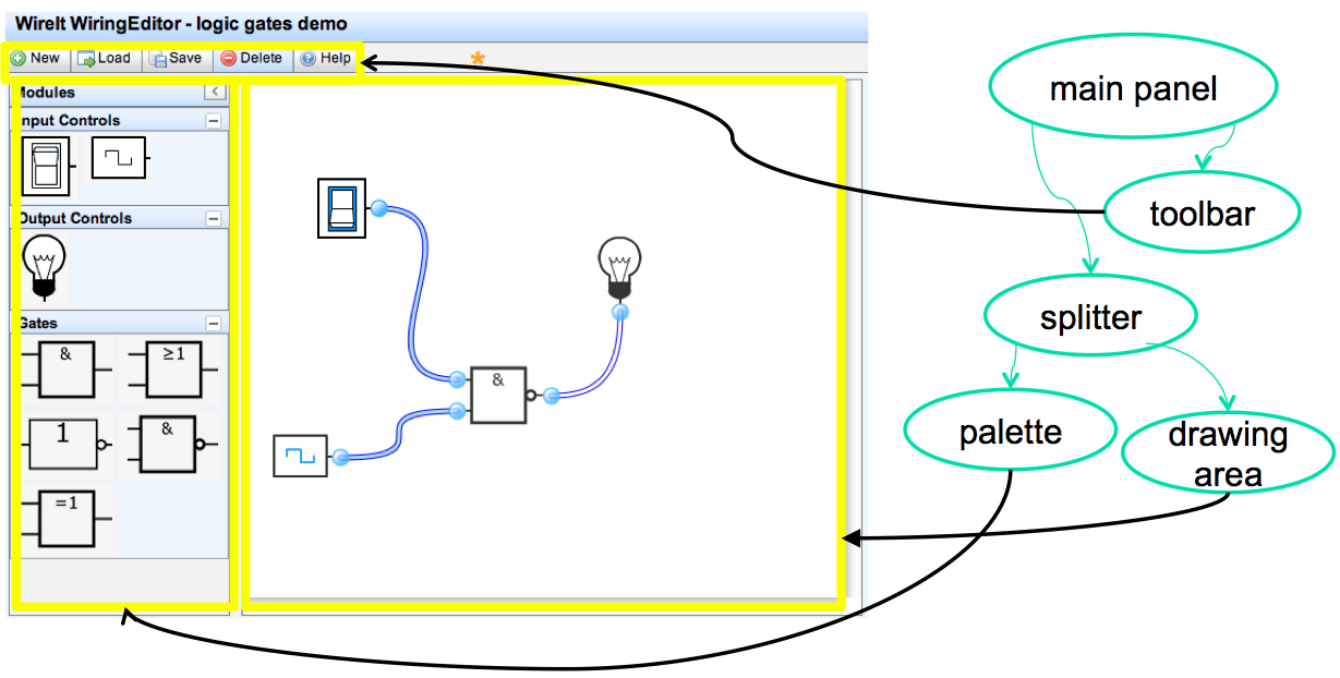 GUIs change their output by mutating the view tree. For example, in the wiring diagram editor shown on the previous slide, the wiring diagram is changed by adding or removing objects from the subtree representing the drawing area. A redraw algorithm automatically redraws the affected parts of the subtree.