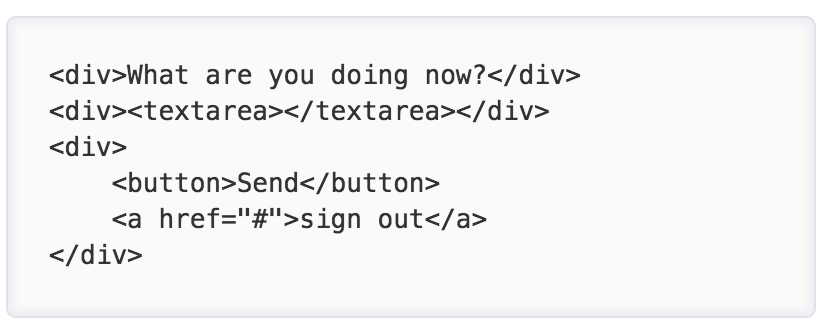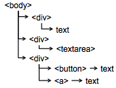 Here's procedural code that generates the same HTML view tree, using JavaScript and the **Document Object Model (DOM)**. DOM is a standard set of classes and methods for interacting with a tree of HTML or XML objects procedurally. DOM interfaces exist not just in JavaScript, which is the most common place to see it, but also in Java and other languages.