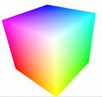 Now let's look at how colors are represented in GUI software. At the lowest level, the RGB model rules. The RGB model is a unit cube, with (0,0,0) corresponding to black, (1, 1, 1) corresponding to white, and the three dimensions measuring levels of red, green, and blue. The RGB model is used directly by CRT and LCD monitors for display, since each pixel in a monitor has separate red, green, and blue components.