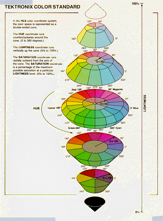 - Hue-Lightness-Saturation (HLS)