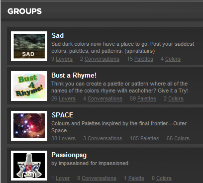 - [ColourLovers](http://www.colourlovers.com/), [Adobe Color CC](https://color.adobe.com/) (crowdsourced palettes)