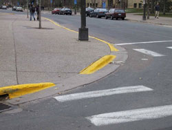 Good universal designs are not dumbed down to make them universal; you shouldn't sacrifice efficiency or flexibility for typical users in order to enable users with reduced ability. Instead, a good universal design has features that make the design better for everyone. Classic examples are kitchen tools with fat, textured handles (like the vegetable peeler shown here); not only are they easier for arthritis sufferers to grip, they're more comfortable and less error-prone for typical users too. Similarly, a sidewalk curb cut not only enables wheelchair users, but also parents with strollers, travellers with luggage, and people pushing carts. Even walkers may find the ramp more convenient than a step.